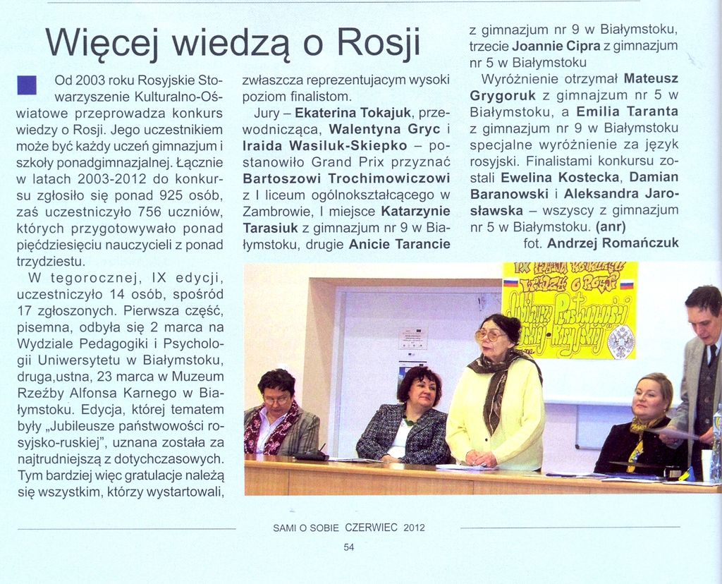 Od 2003r., RSKO przeprowadza Konkurs Wiedzy o Rosj. Konkurs składa się z dwóch części w języku polskim – pisemnej i ustnej, od 2007r., w części ustnej istnieje możliwość odpowiedzi w języku rosyjskim, a od 2008 również w części pisemnej można udzielać odpowiedzi na pytania otwarte w j. rosyjskim).