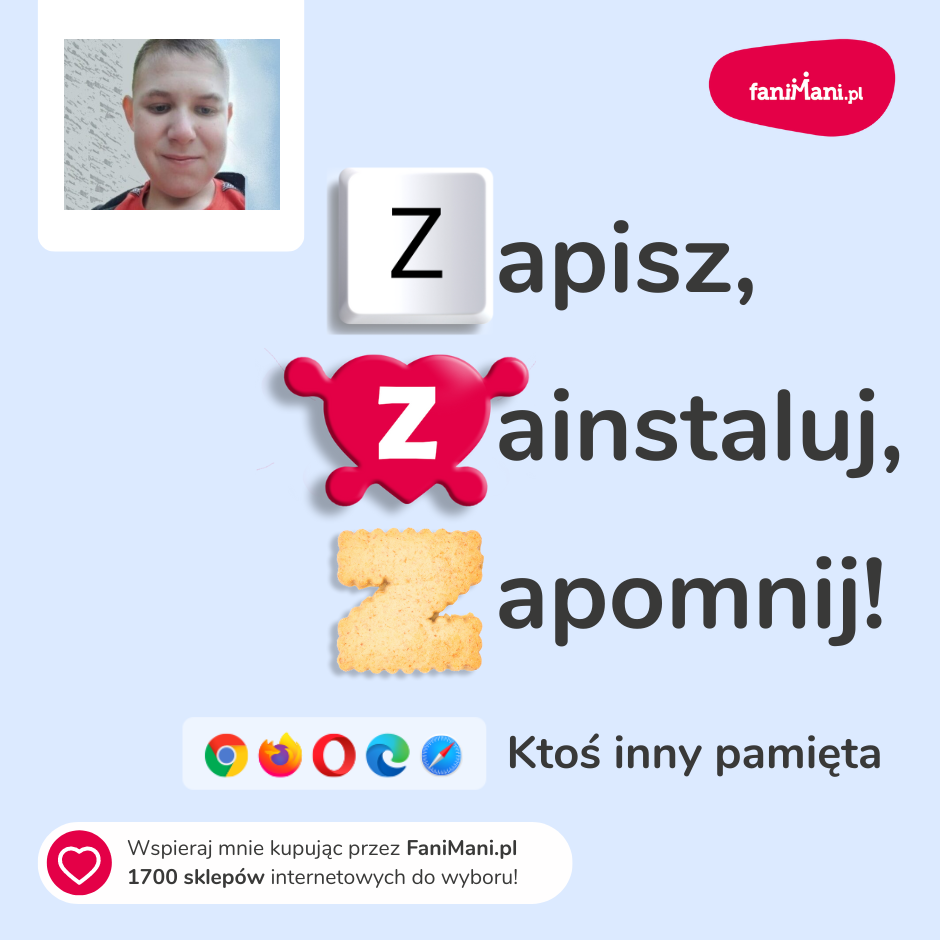 Udostępnij materiały i pomóż Łukasz Łyszczarz zbierać darowizny od zakupów online