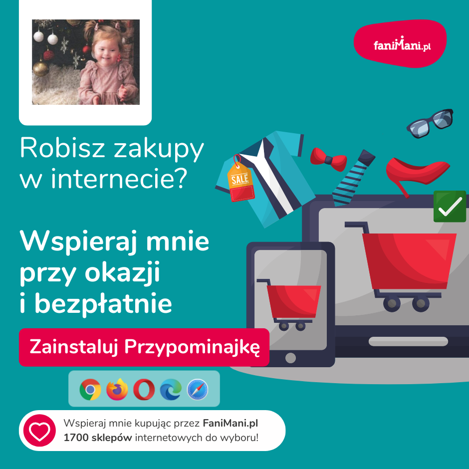 Udostępnij materiały i pomóż Nina Pławecka zbierać darowizny od zakupów online
