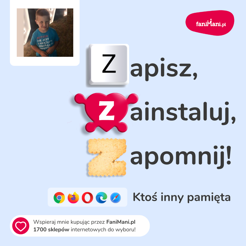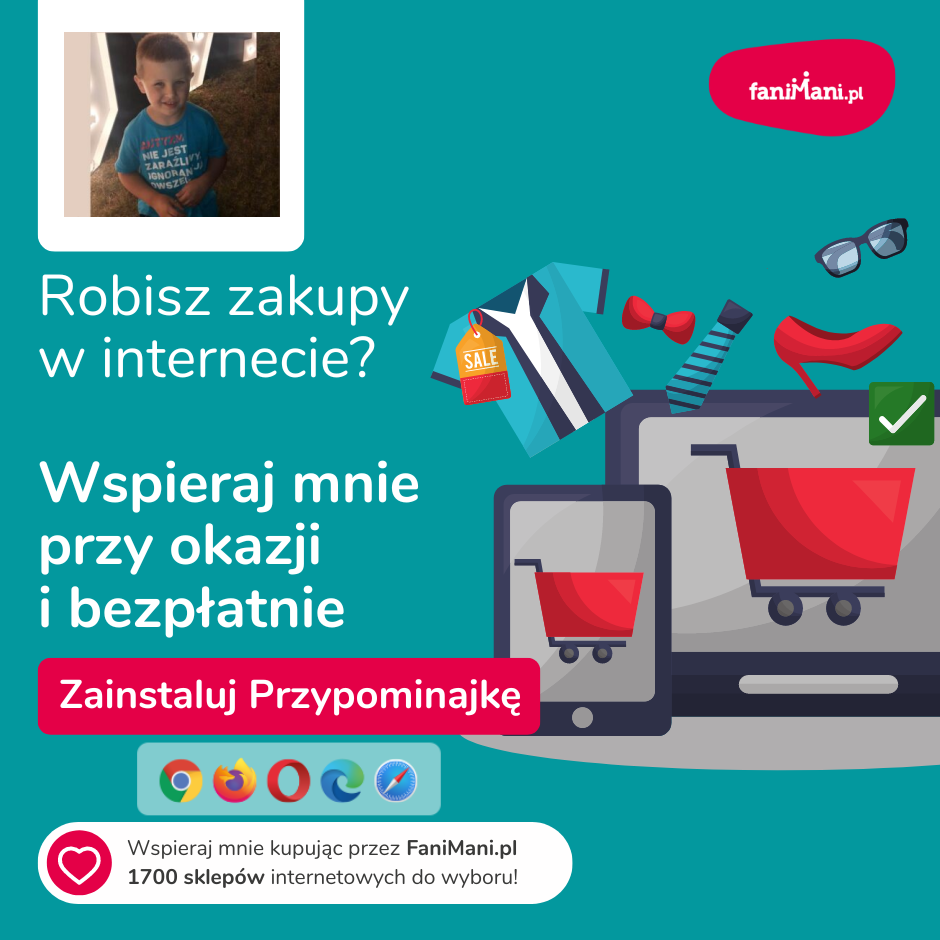 Udostępnij materiały i pomóż Tymoteusz zbierać darowizny od zakupów online