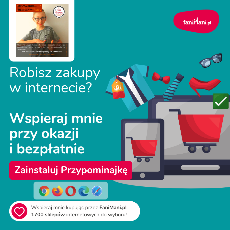 Udostępnij materiały i pomóż Jonasz 006 zbierać darowizny od zakupów online