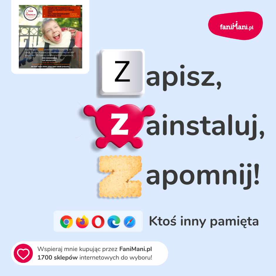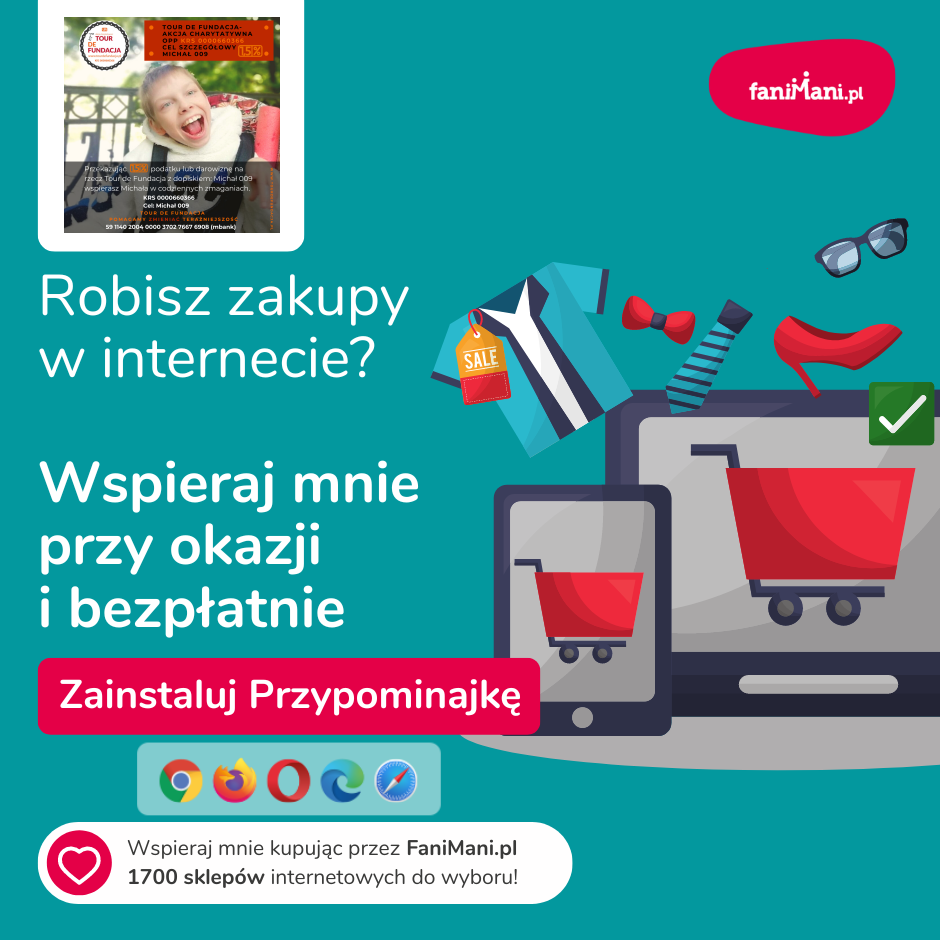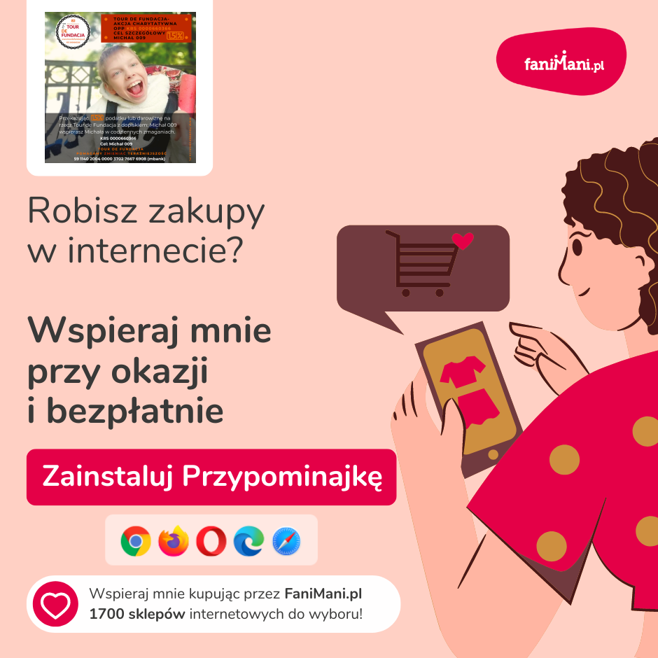 Udostępnij materiały i pomóż Michał009 zbierać darowizny od zakupów online
