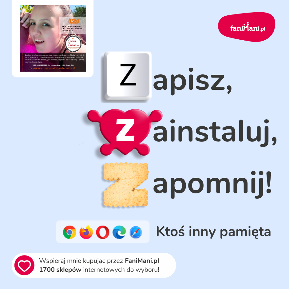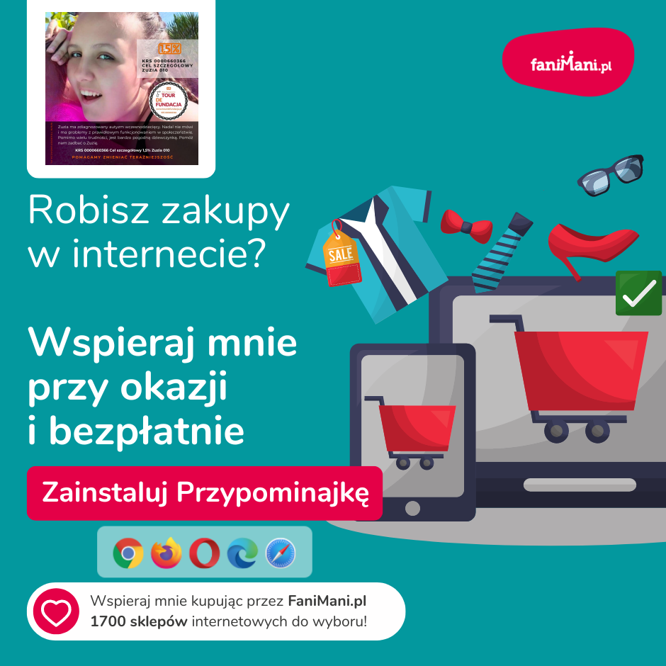 Udostępnij materiały i pomóż Zuzia010 zbierać darowizny od zakupów online