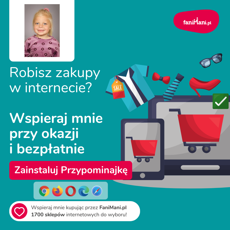 Pomagaj bezpłatnie przy okazji zakupów w internecie Płacisz tyle, co zawsze, a średnio 2,5% wartości Twoich zakupów trafi do organizacji, którą wybierzesz