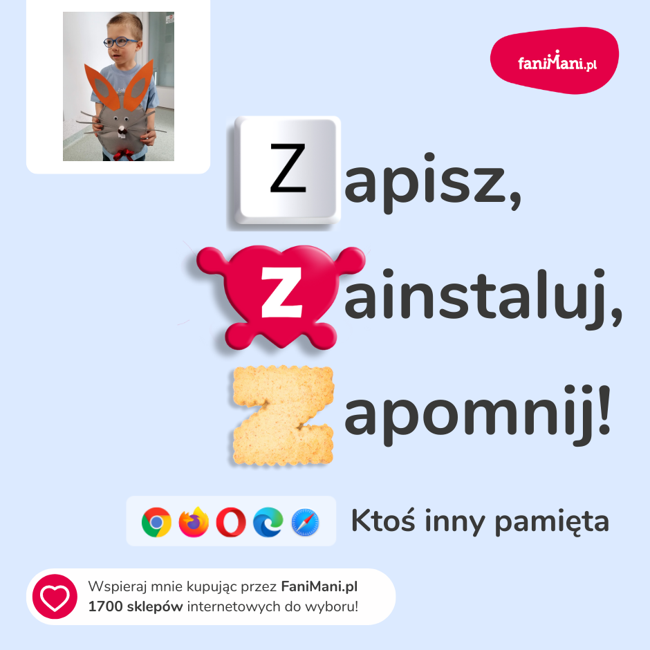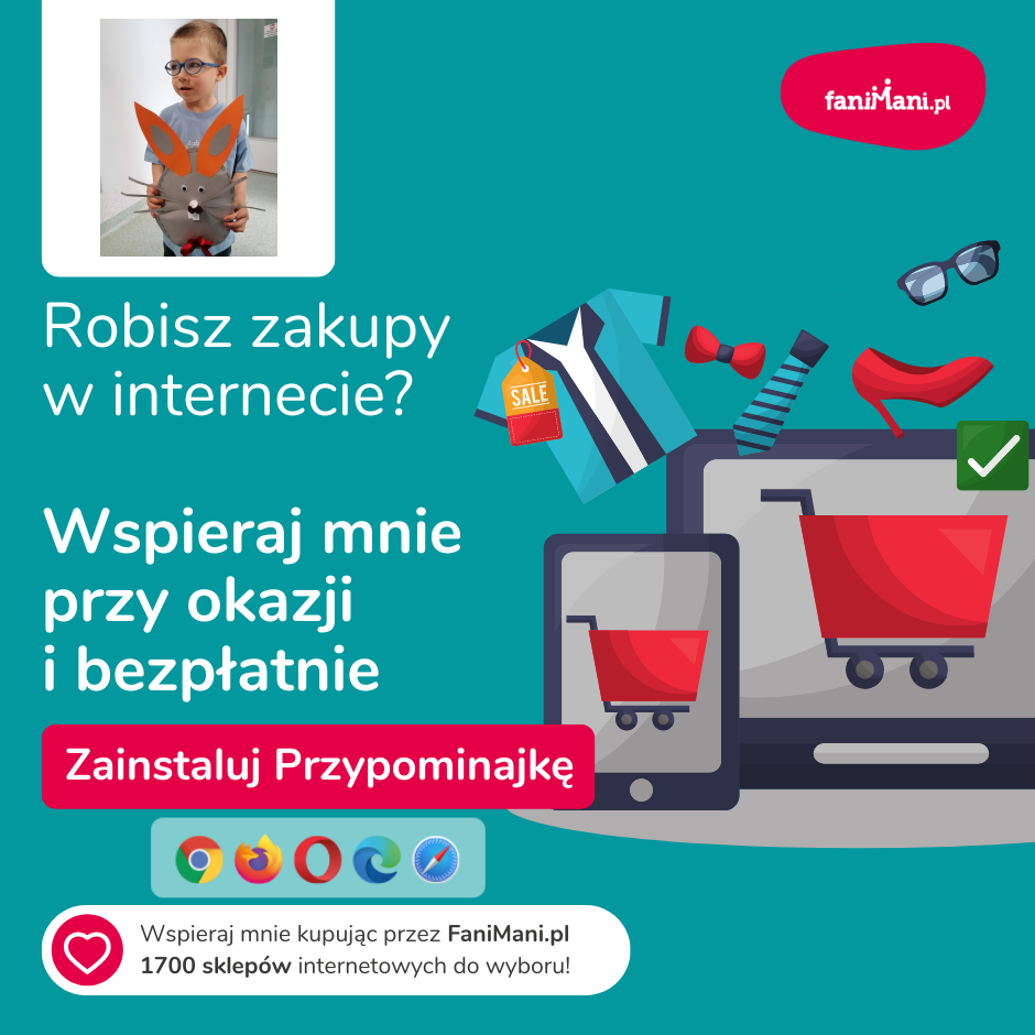 Pomagaj bezpłatnie przy okazji zakupów w internecie Płacisz tyle, co zawsze, a średnio 2,5% wartości Twoich zakupów trafi do organizacji, którą wybierzesz